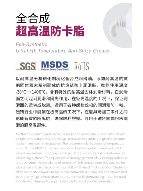 廈門(mén)威馬工貿(mào)有限公司位于美麗的花園城市-廈門(mén)市同安區(qū),公司專(zhuān)營(yíng)合成高溫油脂系列產(chǎn)品。產(chǎn)品分為:高溫鏈條油、高溫潤(rùn)滑脂、高低溫潤(rùn)滑脂等系列油品。廣泛應(yīng)用于:定型機(jī)、噴涂/噴粉、巖棉等高溫潤(rùn)滑設(shè)備,本品無(wú)煙,無(wú)殘?jiān)?,屬于全合成高溫油系列,可寄樣試用,長(zhǎng)期服務(wù)全國(guó)客戶(hù)。